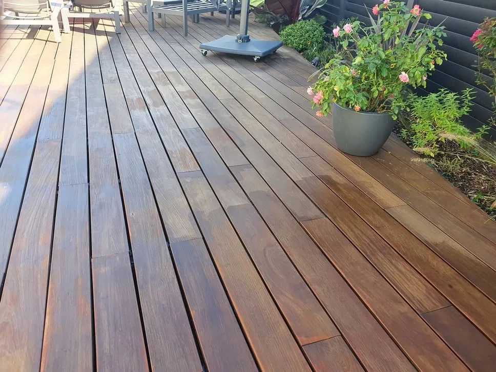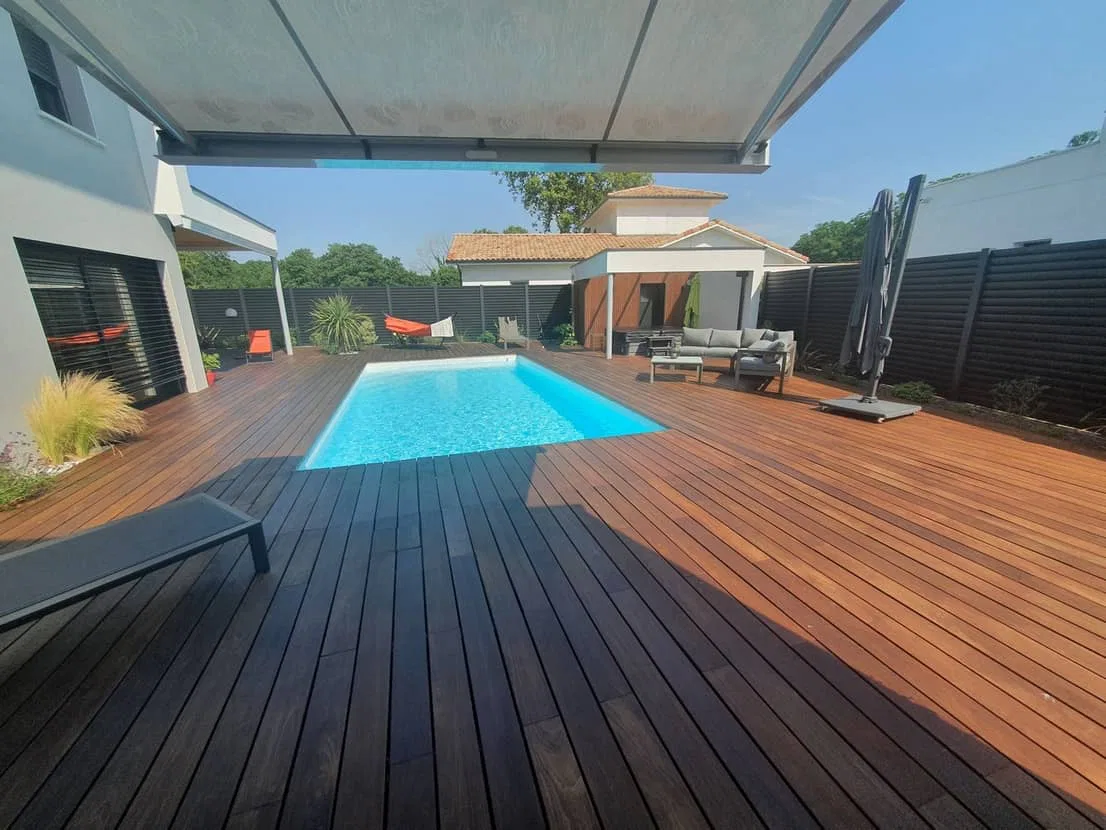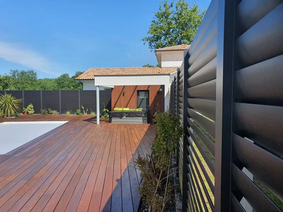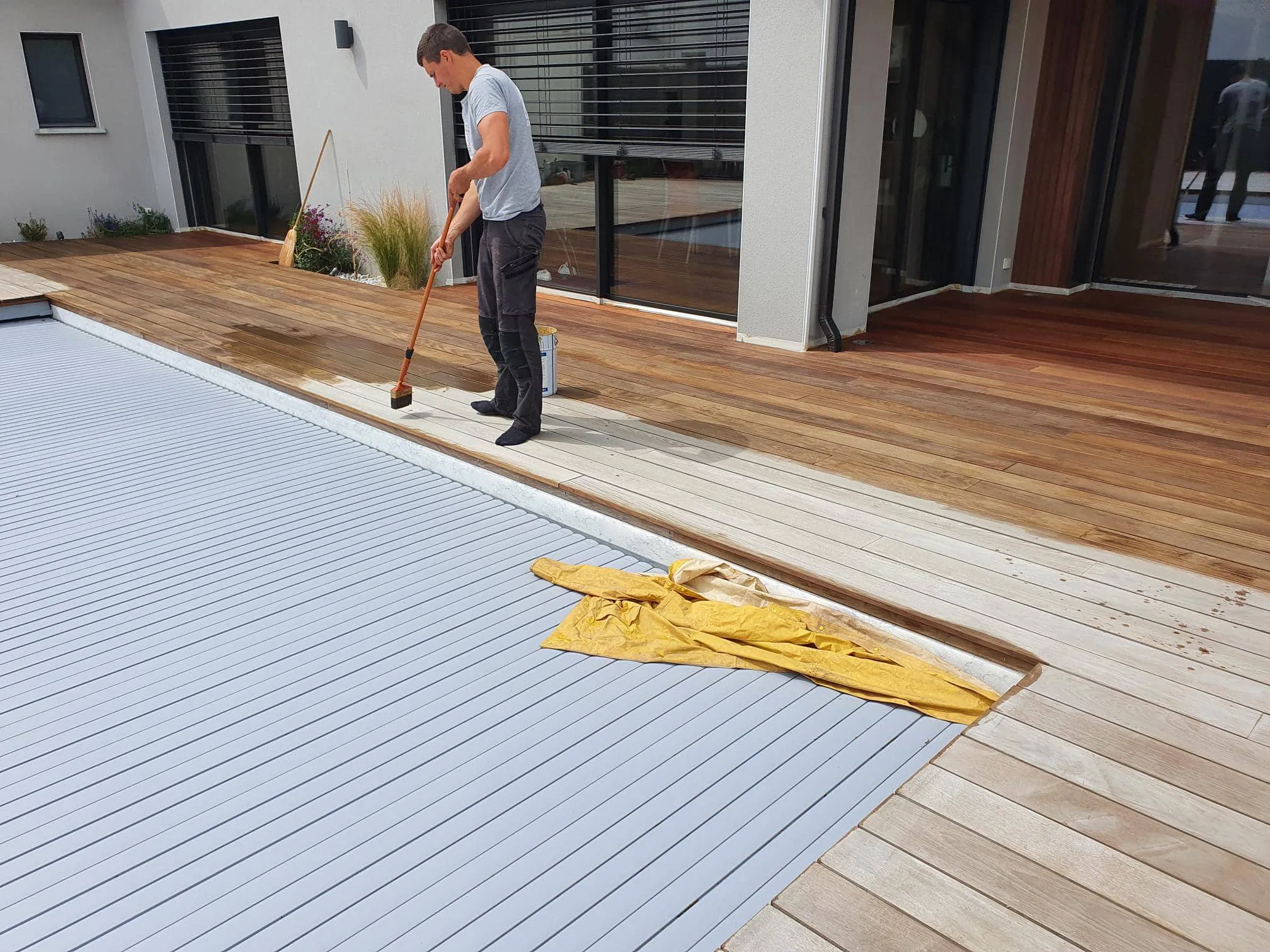Fourniture et pose de caillebotis en Ipé. Fixations invisibles + saturation de l’ensemble.