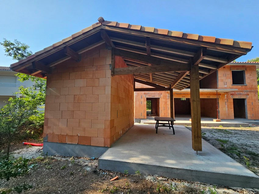 • Pool house avec charpente traditionnelle en pin et lamellé collé traité classe IV