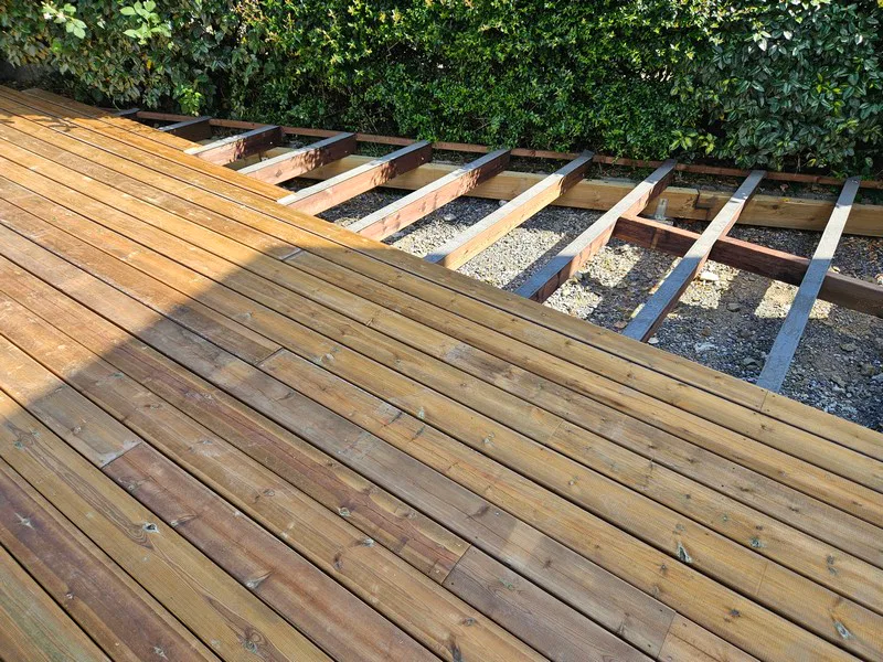 GM Charpentes a réalisé un très belle terrasse en pin maritime traitée classe IV :
